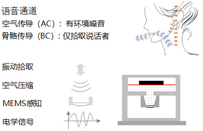 基于優(yōu)越性能/可靠性以及超低功耗,拾取骨導(dǎo)語音通道信號(hào),結(jié)合算法,改善語音交互質(zhì)量。
